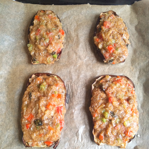 BERENJENAS RELLENAS DE VERDURAS Y AMARANTO